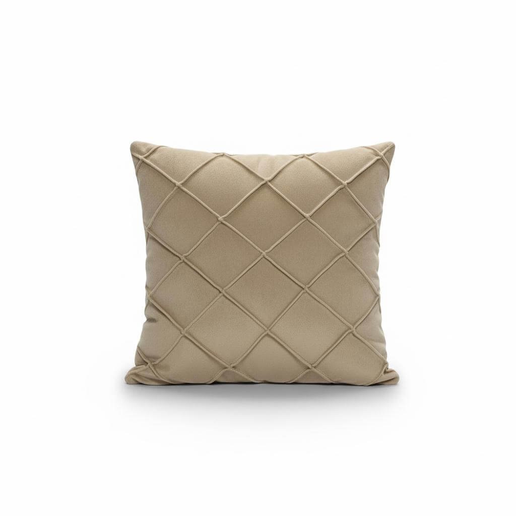 Cojín decorativo en tono beige con diseño acolchado en rombos, ideal para complementar la cuna o la habitación del bebé con un estilo sobrio y elegante.